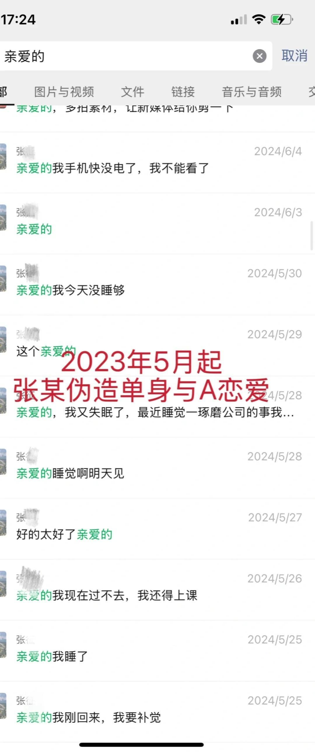 张某一边跟他老婆求和,一边跟A恋爱,一边勾搭其他学员妈妈,甚至跑到外地寻欢。